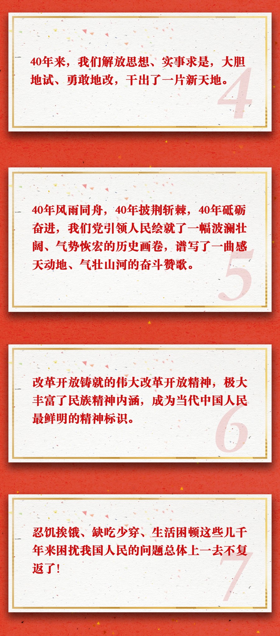 40年春風化雨、春華秋實,改革開放極大改變了中國的面貌、中華民族的面貌、中國人民的面貌、中國共產黨的面貌。