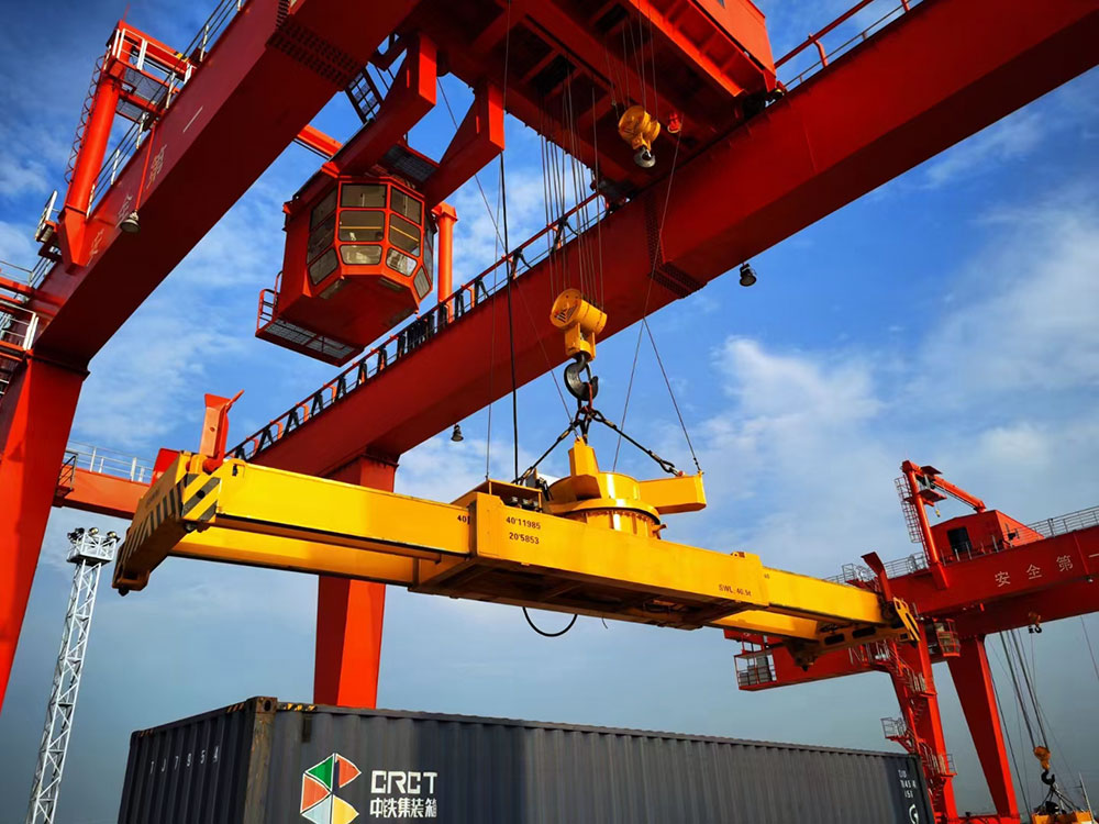 門式起重機(jī)是橋式起重機(jī)的一種變形,又叫龍門吊。主要用于室外的貨場(chǎng)、料場(chǎng)貨、散貨的裝卸作業(yè)。門式起重機(jī)具有場(chǎng)地利用率高、作業(yè)范圍大、適應(yīng)面廣、通用性強(qiáng)等特點(diǎn),在港口貨場(chǎng)得到廣泛使用。